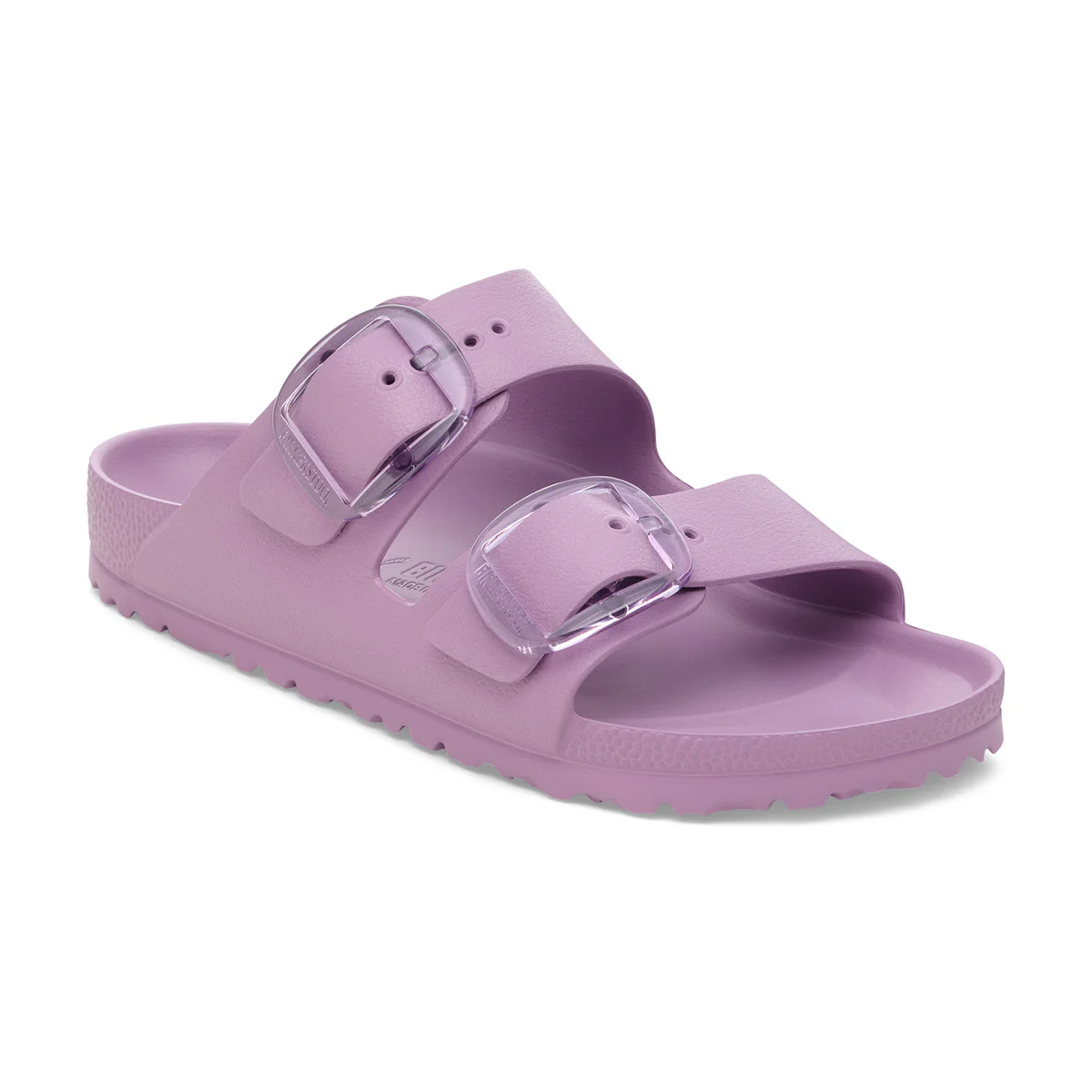 The Birkenstock Arizona is a genuine classic. Modelled on the cork sandal, this version is made from EVA. The high-quality, odour-neutral EVA has been tested for harmful substances and combines numerous positive attributes: it is very light, highly elastic, water-resistant, and skin-friendly and offers the comfort you have come to expect from Birkenstock. This version features our popular Big Buckle made from a stainless synthetic material and makes an impression with its durability and minimalist design.