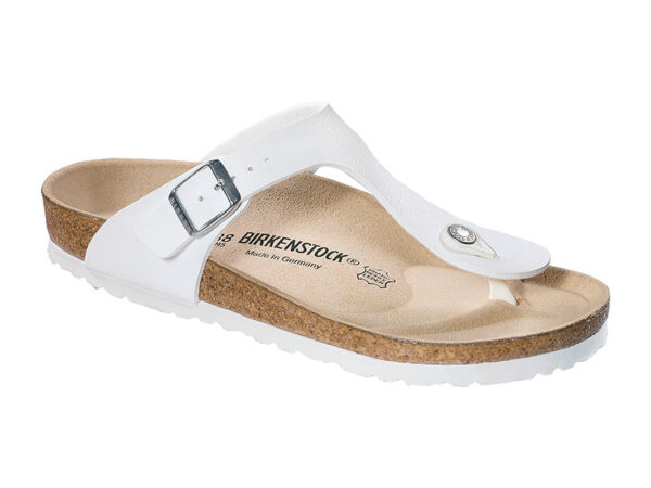 The Birkenstock Gizeh is a stylish all-rounder: extremely versatile yet unbelievably comfortable. Its design and function have remained unchanged since it was introduced in 1983, and the classic thong sandal stands out for its timeless style. Thanks to the buckle, the strap can be individually adjusted to the wearer's feet. The anatomically shaped thong provides additional support for the toes and guides them back to their natural position.